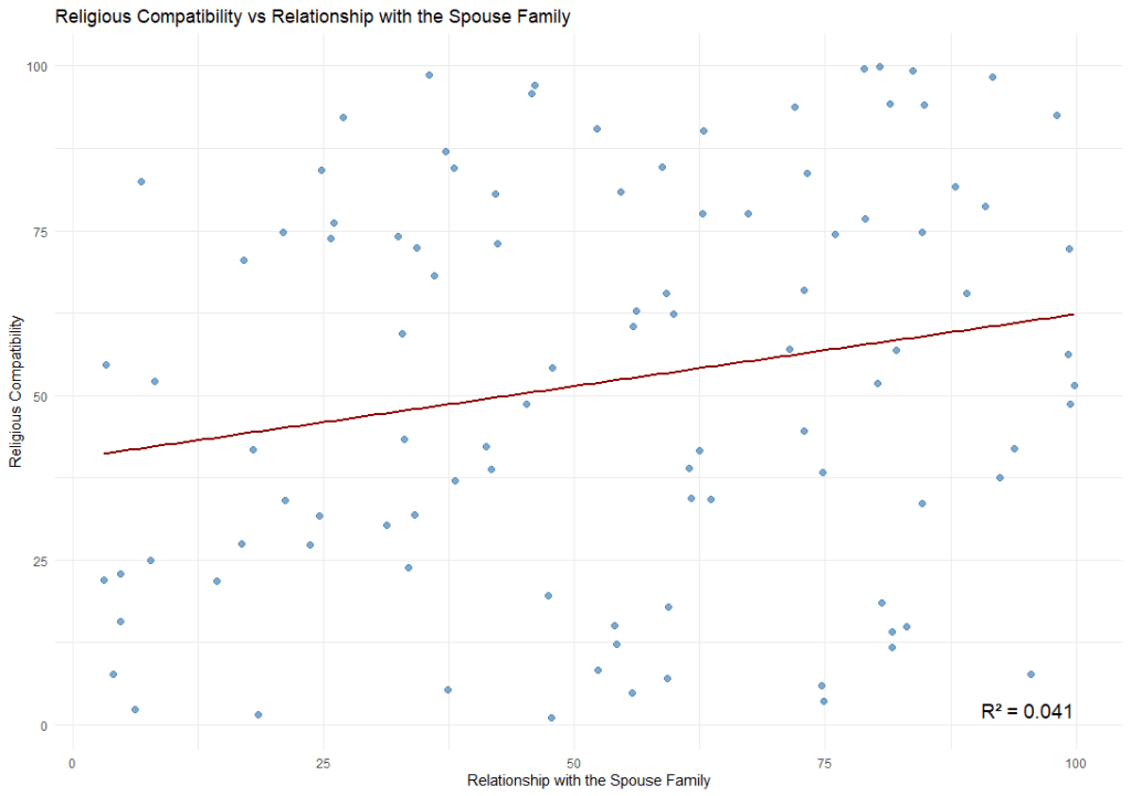 labs(title = "Religious Compatibility vs Relationship with the Spouse Family",